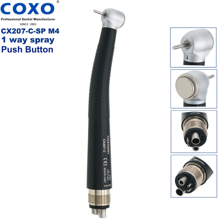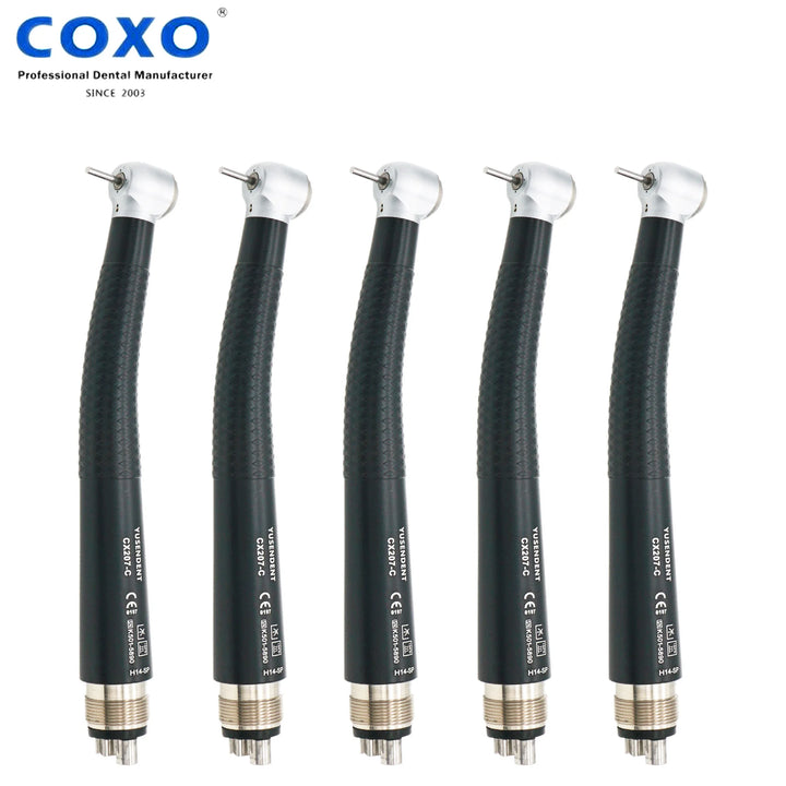 5PCS COXO Dental Black Turbine Anti-retraction High Speed Handpiece Standard Head 4 Holes Push Button Aluminum Alloys Body