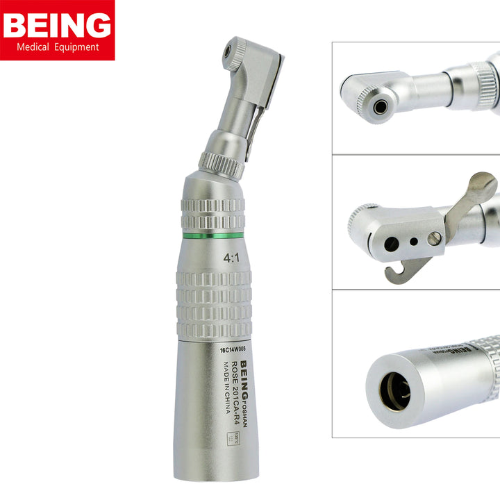 BEING Dental 4:1 Reduction Latch Bur Low Speed Contra Angle Handpiece Rose 201CA-R4