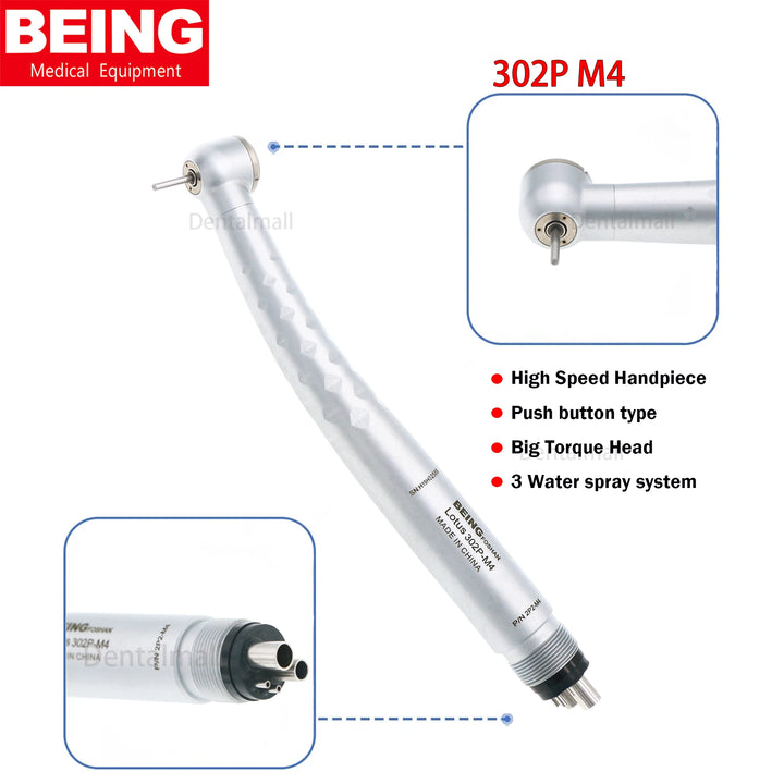 BEING Dental High Speed Handpiece Big Torque Head Push Button 3 Spray Lotus 302P M4