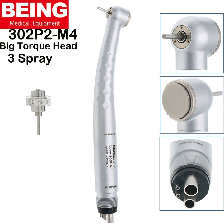 BEING Dental Torque Head Push Button 3 Spray High Speed Handpiece Lotus 302P M4