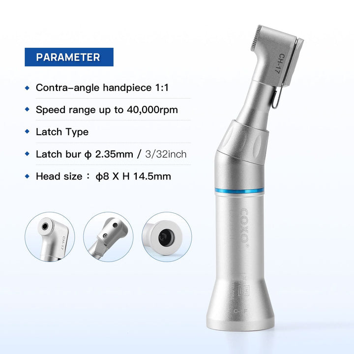 COXO CX235-1F Low-speed Handpiece, 1:1 External, Contra Angle, Max.40,000rpm, Wrench Switch, for CA burs Ø2.35mm. #C-1F