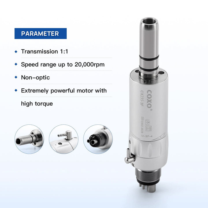 COXO CX235-3F Low-speed Handpiece, 1:1 External, Air Motor, 20,000rpm, 4-hole coupler. #M-3F-4