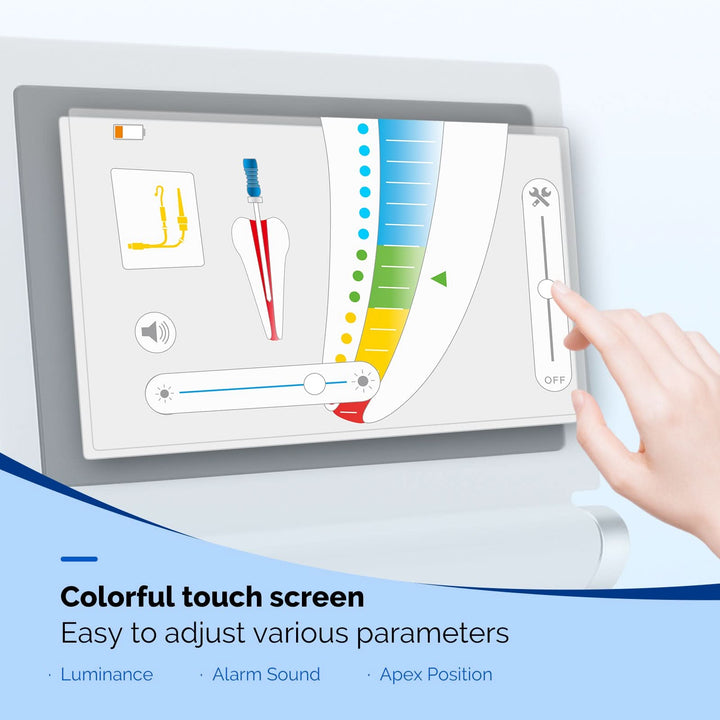 User-Friendly Interface: The intuitive touchscreen allows for simple adjustments of various parameters, including luminance, alarm sounds, and apex position, making it accessible for both experienced practitioners and those new to endodontic procedures.