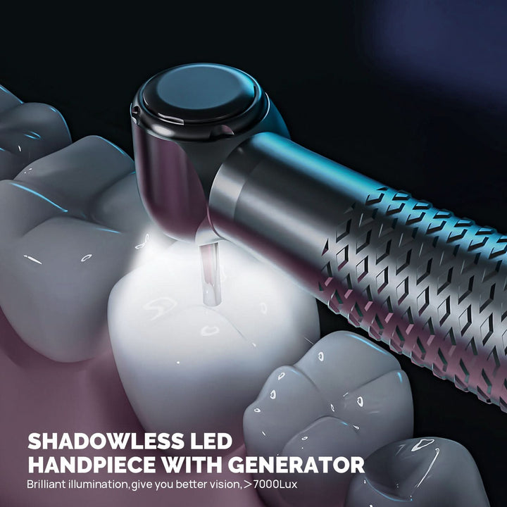 - Shadowless Led, handpiece with generator, brilliant illumination, give you better vision, > 7000Lux.