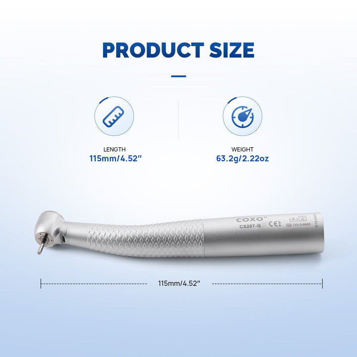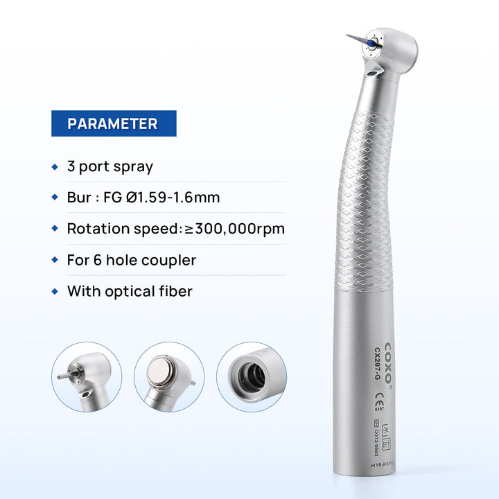 COXO CX207-G Fiber-optic High-speed Air Turbine Handpiece, ≥300,000rpm, Standard Head, 3-port spray, (no coupling, fit into KaVo or COXO 229-GK 6-hole coupler), #H16-KSPQ
