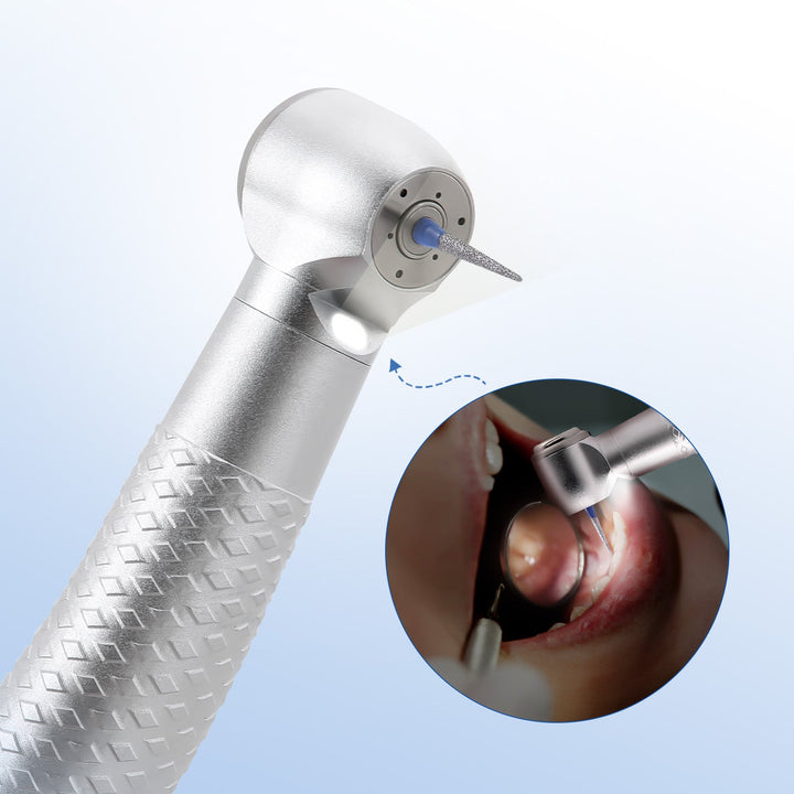 - New six spray system ( with 3 water 3 air spray ) can cool the treated area and the bur effectively and roundly.