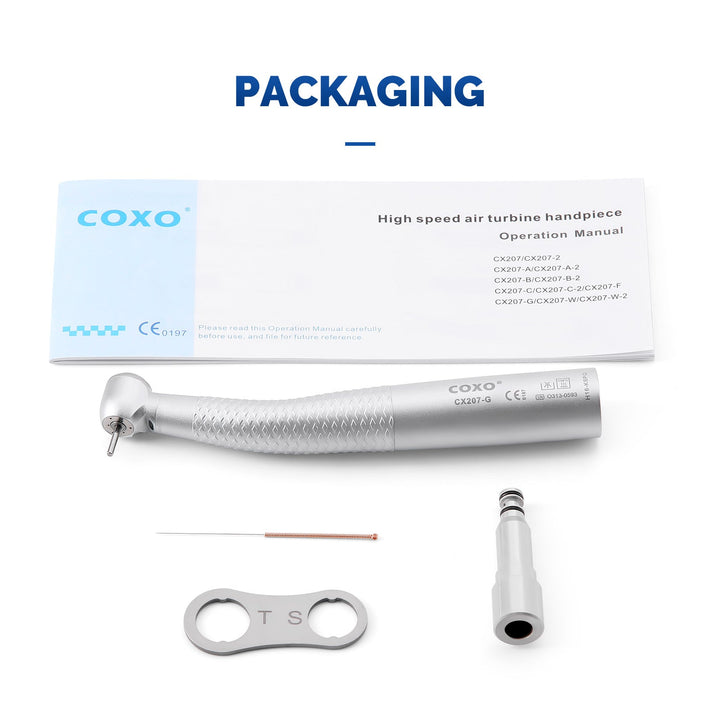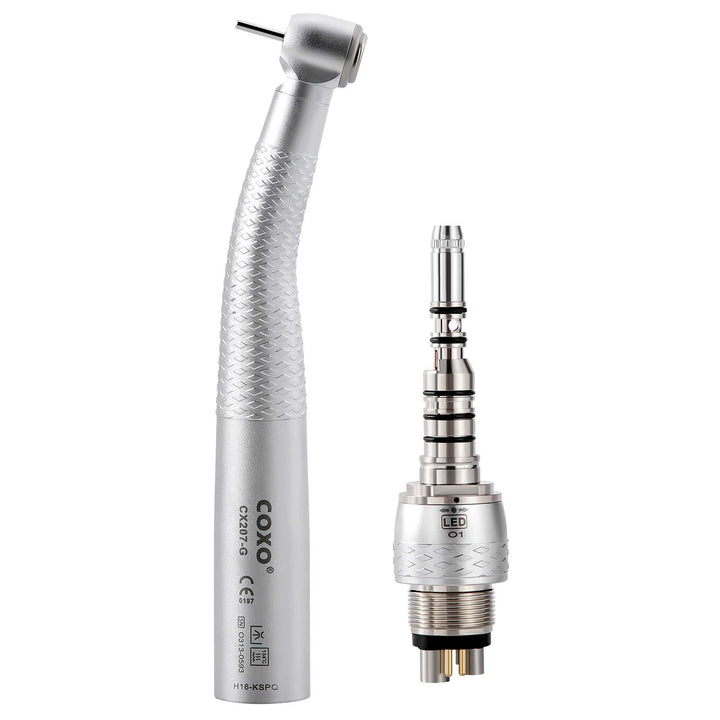 COXO CX207-G Dental Fiber Optic High Speed Air Turbine Handpiece Standard Head H16-KSPQ & 6 Holes LED Quick Coupler CX229-GK.