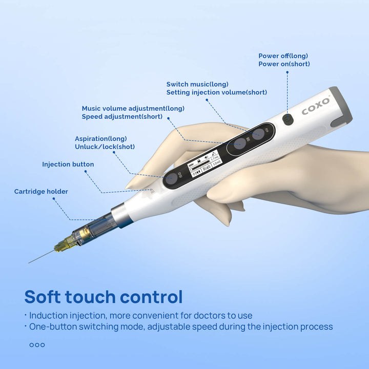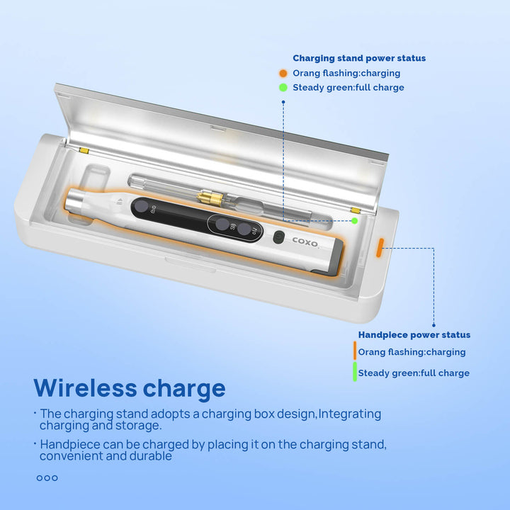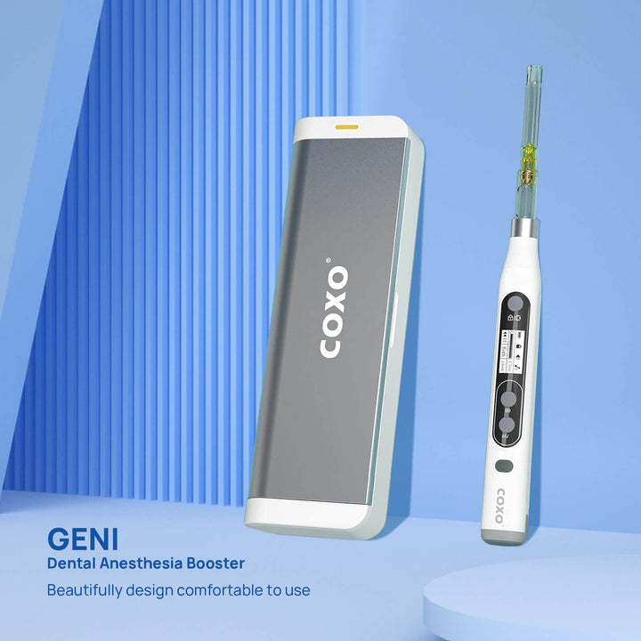 COXO Dental Anesthesia Booster Wireless Charge Intelligent Injection #GENI. FDA approved. Easy operation. Real-Time notice. Lithium battery Charging Safety. Compatible with two types of needles (Metric and British system).