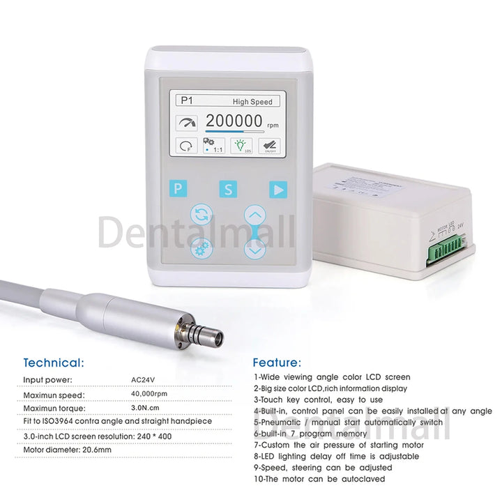According to the different treatments and different handpieces , the speed can be adjusted from 100-200.000rpm/min