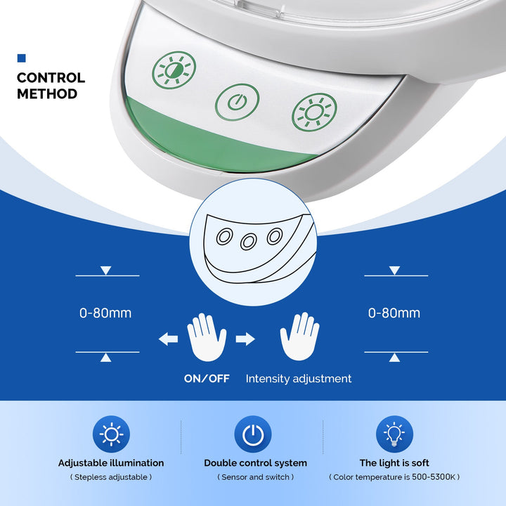 - Adjustable illumination (stepless), color temperature in the range of 5000K and 5300K. As a natural light,reduce damage to the eyes during long time operation.