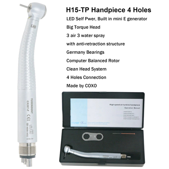 COXO Dental Self Power LED Handpiece High Speed Turbine CX207-F Midwest 4 Hole