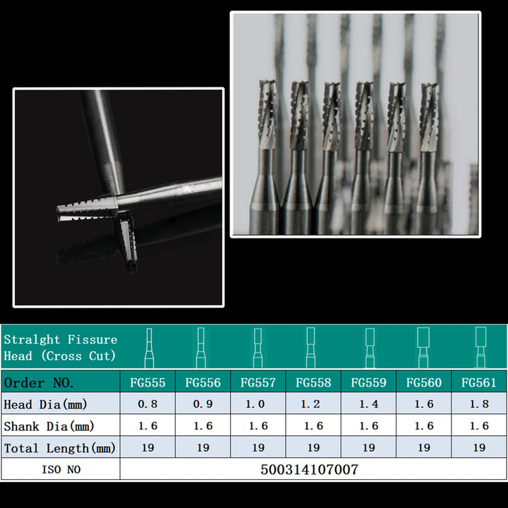 Dental Tungsten Carbide Bur Cross Cut Straight Fissure Head