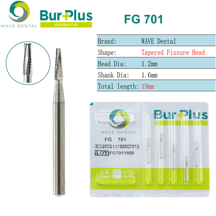 Dental Burs Tungsten Carbide Taper Fissure Type FG 701 701L 5Pcs/Pack