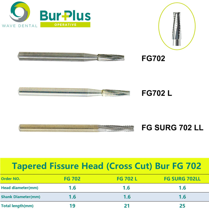 5pcs/Pack FG Dental Tungsten Carbide Bur Tapered Fissure Cross Cut Head FG 702 FG702L FG SURG 702LL