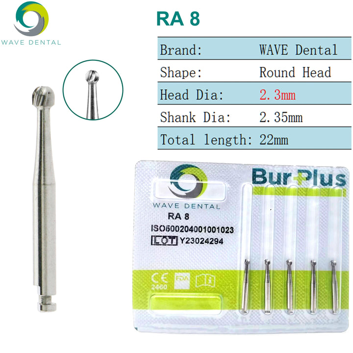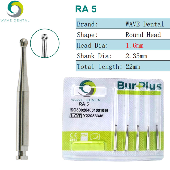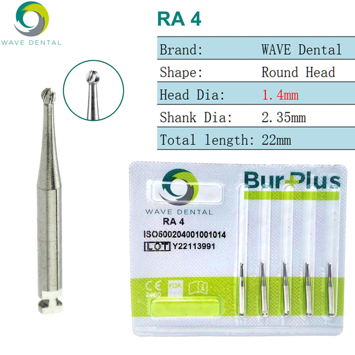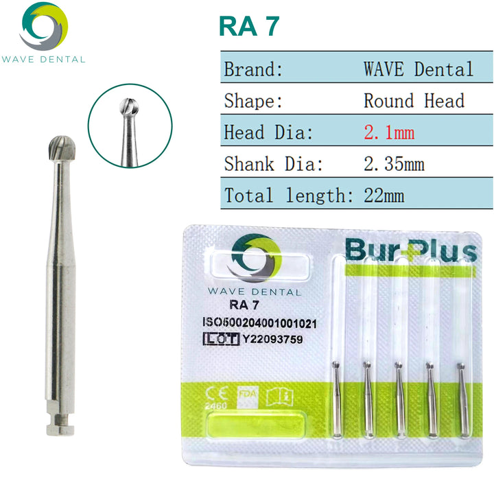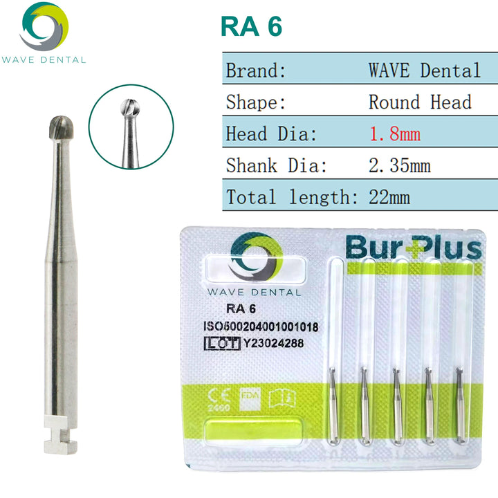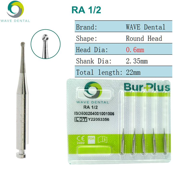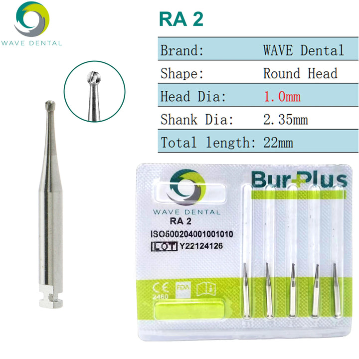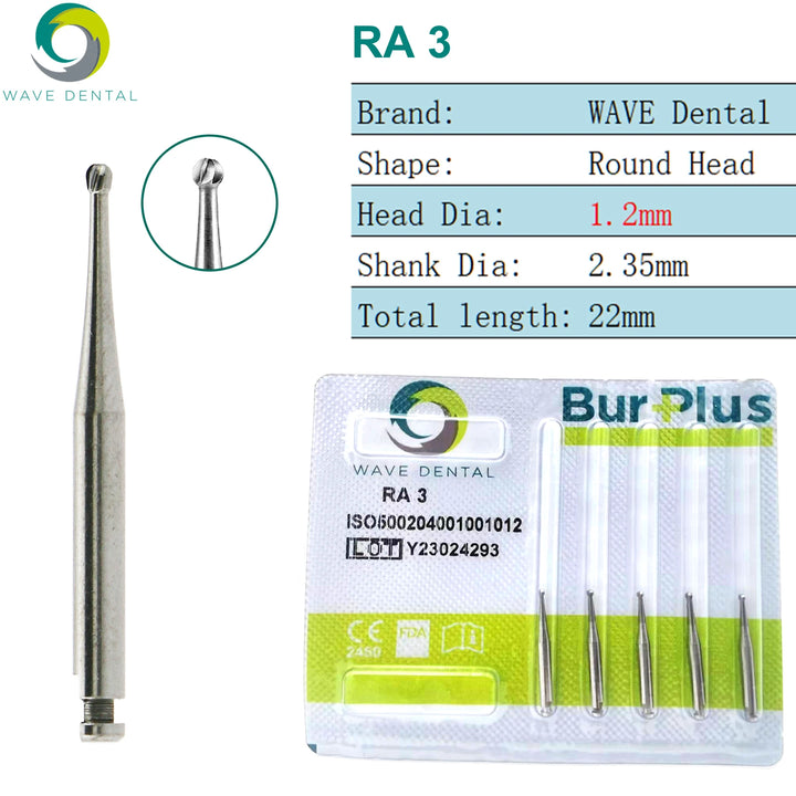 WAVE Dental Burs Tungsten Carbide Low Speed Bur Round Ball Shank Dia:2.35mm Total length:22mm