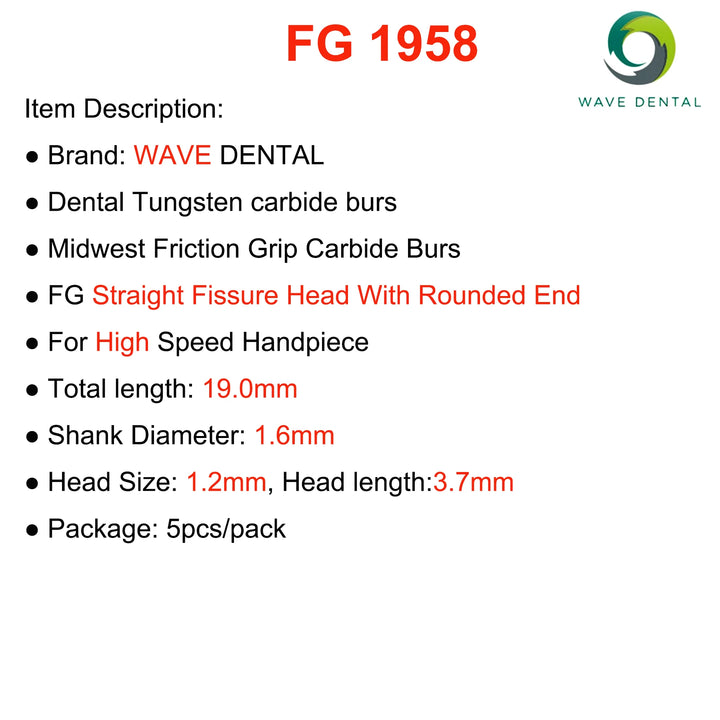 Dental Tungsten Carbide Bur Broken Crown Needle Straight Fissure Dome End