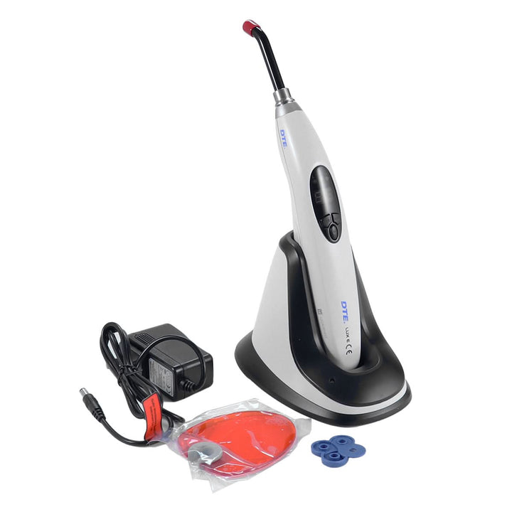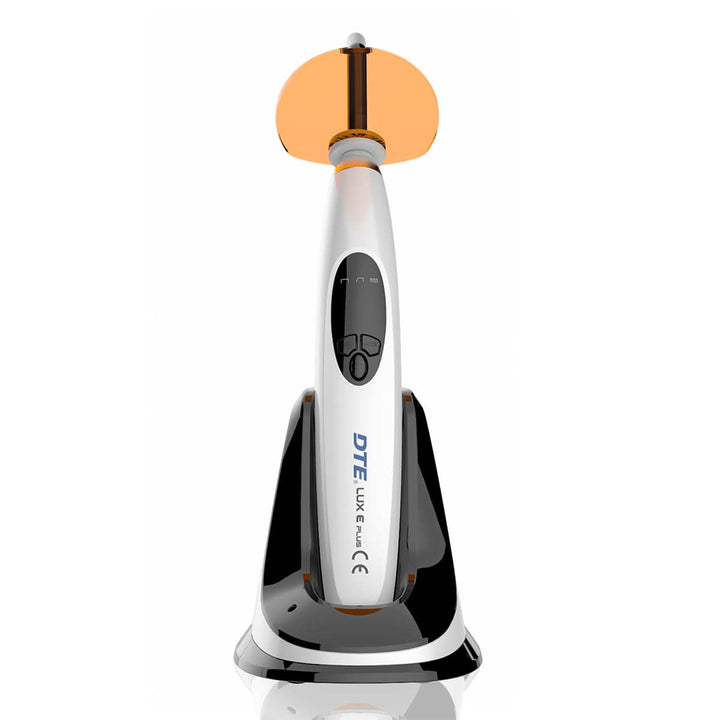 Woodpecker DTE LUX E Plus Curing Light, Wireless, White Color. 3 Working mode: Full, Ramping, Pulse. Time setting: 5s, 10s, 15s, 20s. Constant light intensity output.