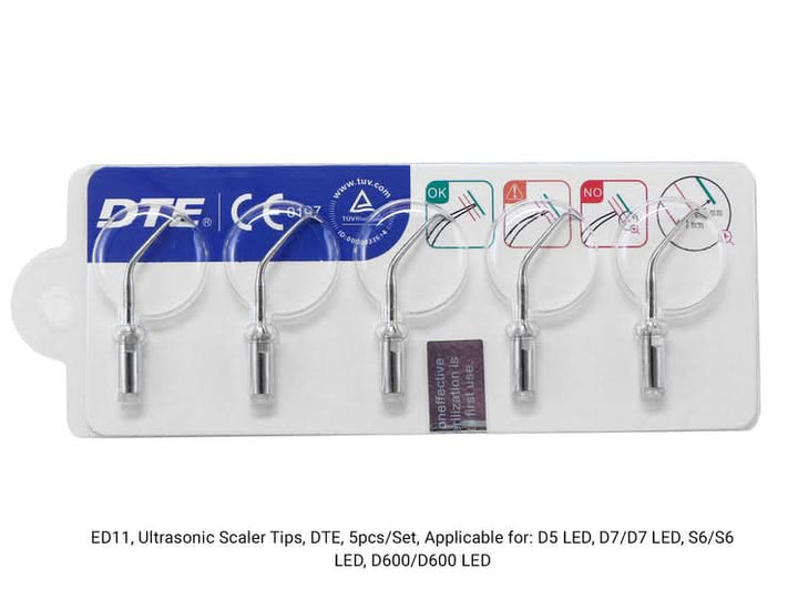 Woodpecker DTE Ultrasonic Scaler Tips ED11 5pcs/Set. Compatible with SATELEC and NSK, Applicable for: D1, D5 LED, D7/D7 LED, S6/S6 LED, D600/D600 LED.