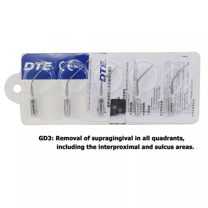 Original Woodpecker DTE Ultrasonic Scaler Tips GD3 5pcs/Set. GD3 tips is to remove the calculus and bacterial plasue on subgingival interdental calculus. Compatible with SATELEC and NSK, Applicable for: D1, D5 LED, D7/D7 LED, S6/S6 LED, D600/D600 LED