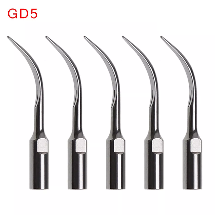 Original Woodpecker DTE Ultrasonic Scaler Tips GD2 5pcs/Set. GD5 tip is to remove supragingival and neck calculus and bacterial plasue. Compatible with SATELEC and NSK, Applicable for: D1, D5 LED, D7/D7 LED, S6/S6 LED, D600/D600 LED