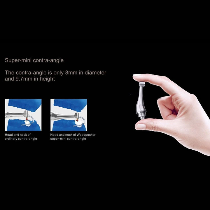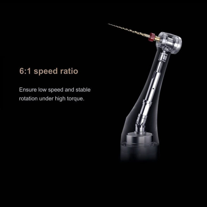 - 360° Rotatable Contra-angle, 6:1 Super Mini Curved Handpiece. Smooth rotation, lower noise, and small vibration in handpiece doctors feel good during operations. Patients will have a new experience in root canal therapy.