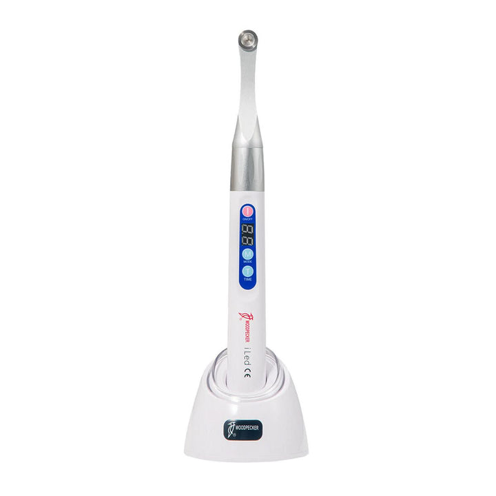 Woodpecker Dental ILED PLUS Curing Light. Wireless 360° Rotary. 1 Second Curing 2mm Reins. 2500mW/cm2 Light Intensity. Metal Head. Upgraded Wide Spectrum (385nm-515nm). Focused Light Output. Ergonomics Fluid Design. Two Working Modes. 1400mAh Rechargeable Lithium Battery, FDA Approved. One Year Warranty.